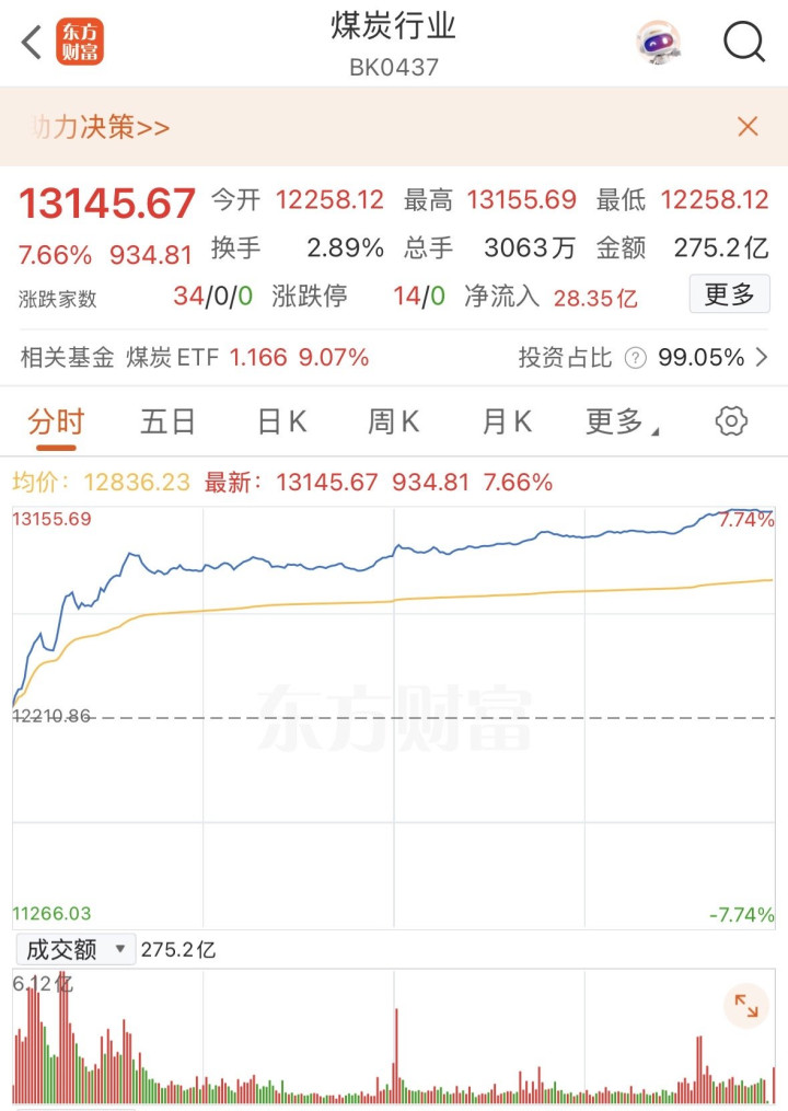 另外,煤炭、光伏等板块也在今日迎来大爆发。煤炭板块今日上涨超7%,恒源煤电、开滦股份、大有能源等纷纷涨停。消息面上看,可能与印尼一则消息有关。据媒体报道,印尼政府提出大幅减产计划,该国矿商已暂停现货煤炭出口。光伏设备板块内同样多股涨停,板块内仅个位数的股票下跌,最大跌幅在3%以内。近期“太空光伏”话题的讨论度居高不下,板块热度也在持续升温,不少券商看好这一领域,或能成为下一片蓝海。